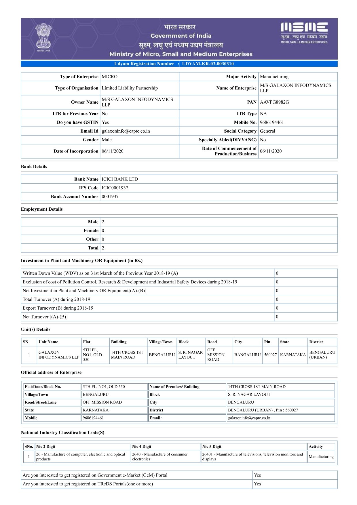 UDYAM REGISTRATION CERTIFICATE